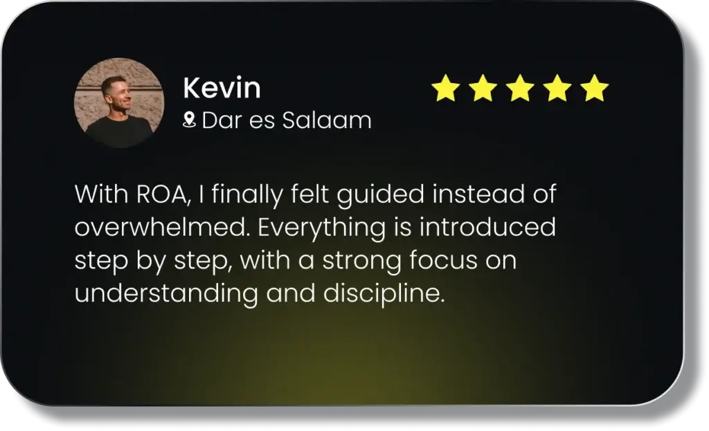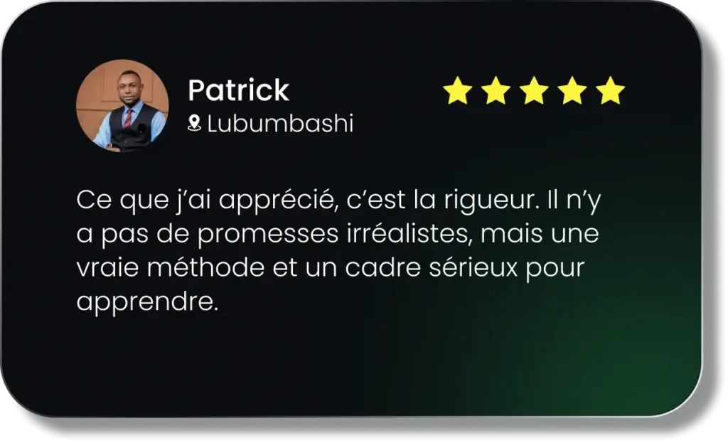 Il découvre le trading en 2015, alors qu’il poursuit ses études universitaires, et décide deux ans plus tard d’y consacrer sa vie. Depuis, il a accompagné des centaines d’apprenants à travers l’Afrique et la diaspora, en partageant non seulement des stratégies, mais surtout une philosophie.