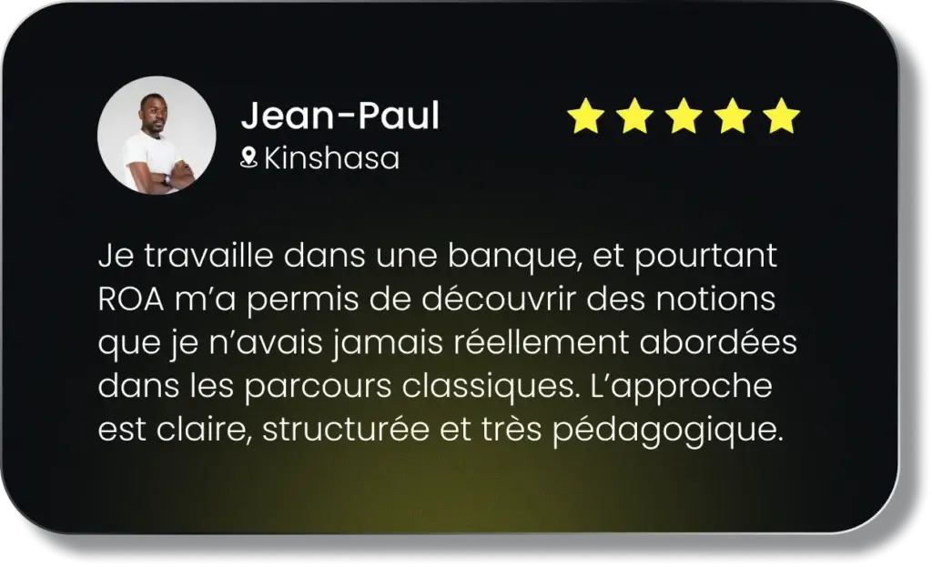 Il supervise la conception des programmes, le développement de l’écosystème ROA+, et les initiatives d’intégration du Web3 et de la DeFi dans la formation financière africaine.